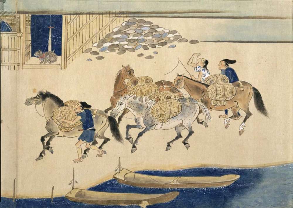 Many of the goods carried by *umagae* were offerings from Kyoto’s court nobles to provincial lords, or the reverse.